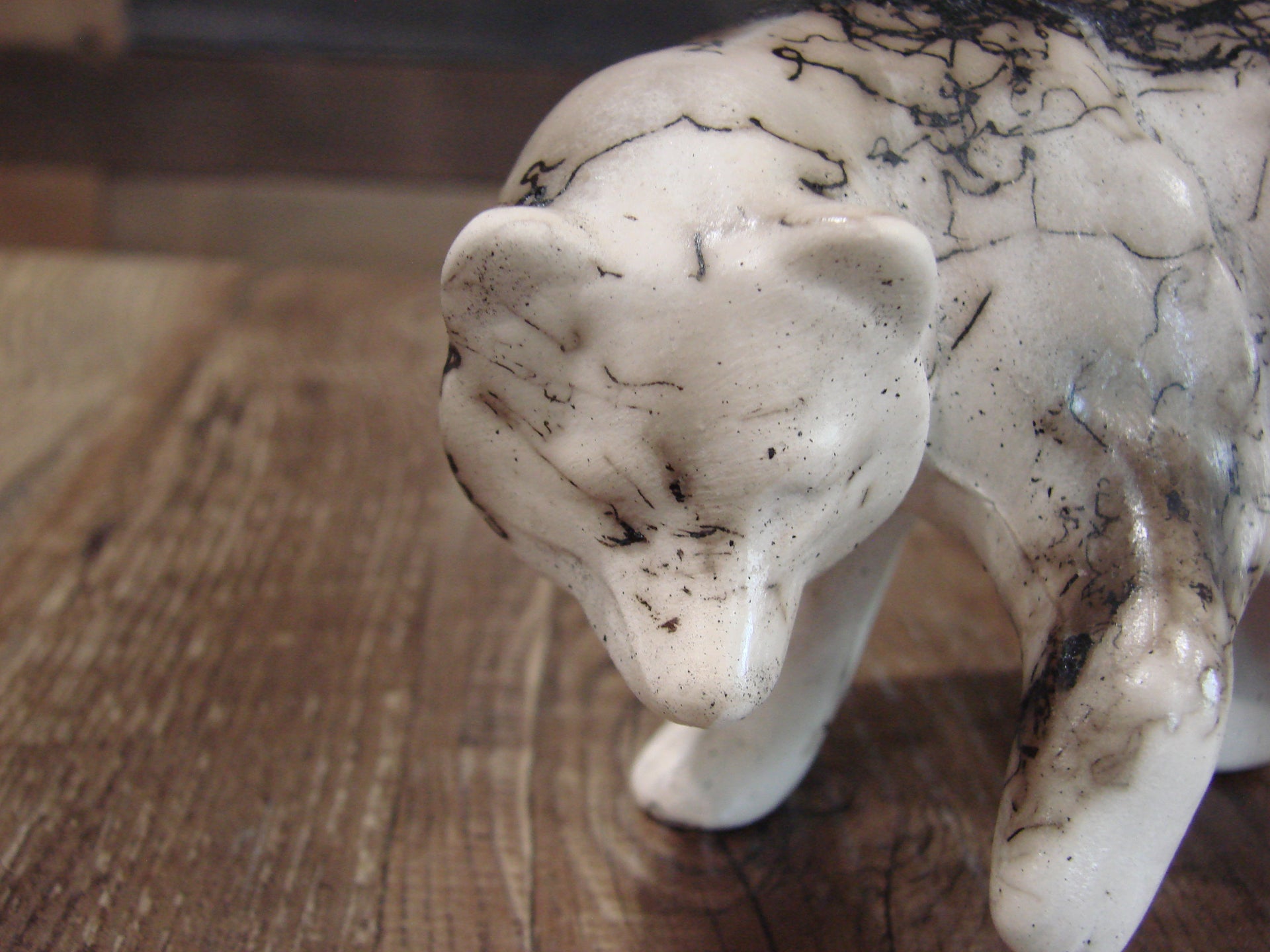 Native American Navajo Indian Horse Hair Bear Sculpture from Western New Mexico. This Small Bear sculpture features beautiful horse hair and hand etching throughout. The Horse hair is laid over this piece during firing, the result is a beautiful one of a kind look! Hand etched by Navajo artist Vail. Signed on the bottom. Free Shipping included!