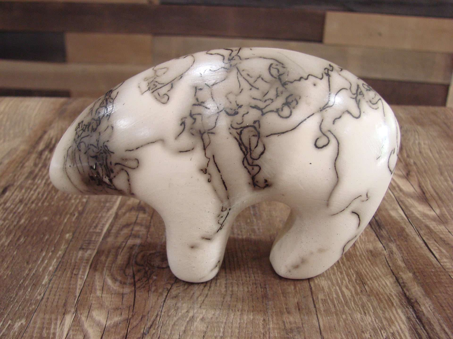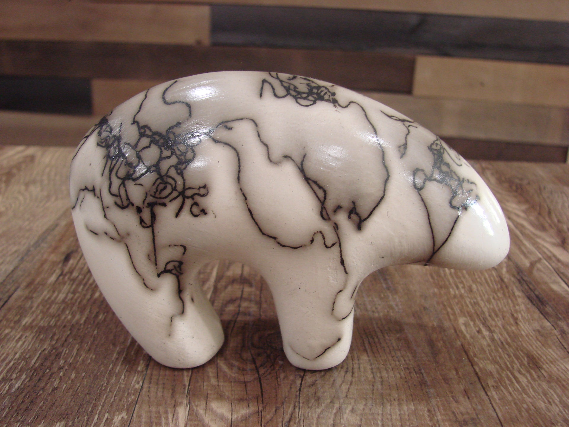 Genuine Native American Navajo Indian Horse Hair Bear Sculpture from Western New Mexico. This Small Bear sculpture features beautiful horse hair throughout. The Horse hair is laid over this piece during firing, the result is a beautiful one of a kind look! Hand etched by Navajo artist Vail. Signed on the bottom. Free Shipping included!