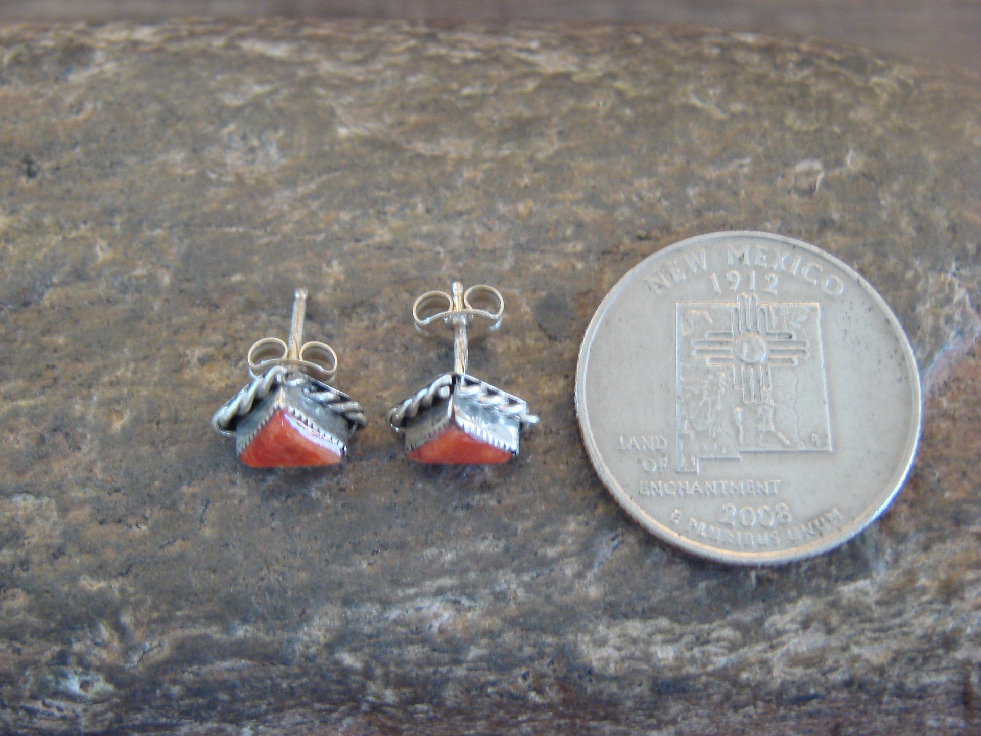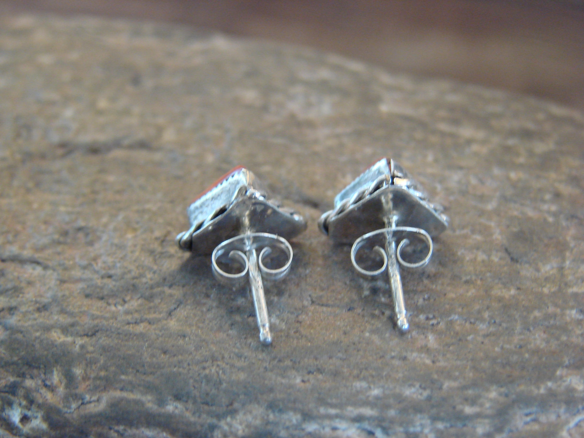 Zuni Indian Sterling Silver Triangular Spiny Oyster Post Earrings by Cachini